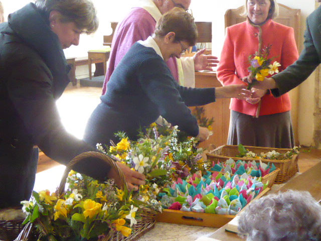 At the end of the service the children distributed posies of flowers to their mothers, and grandmothers, and as we left the Church we were given a piece of Simnell cake to take home. There was coffee after the service.